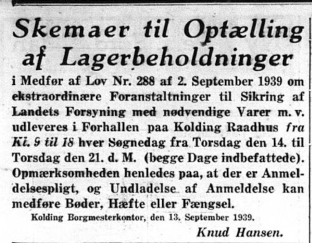 Kilder: ingen nye cigarbutikker, Kolding Socialdemokrat, 28. September 1940